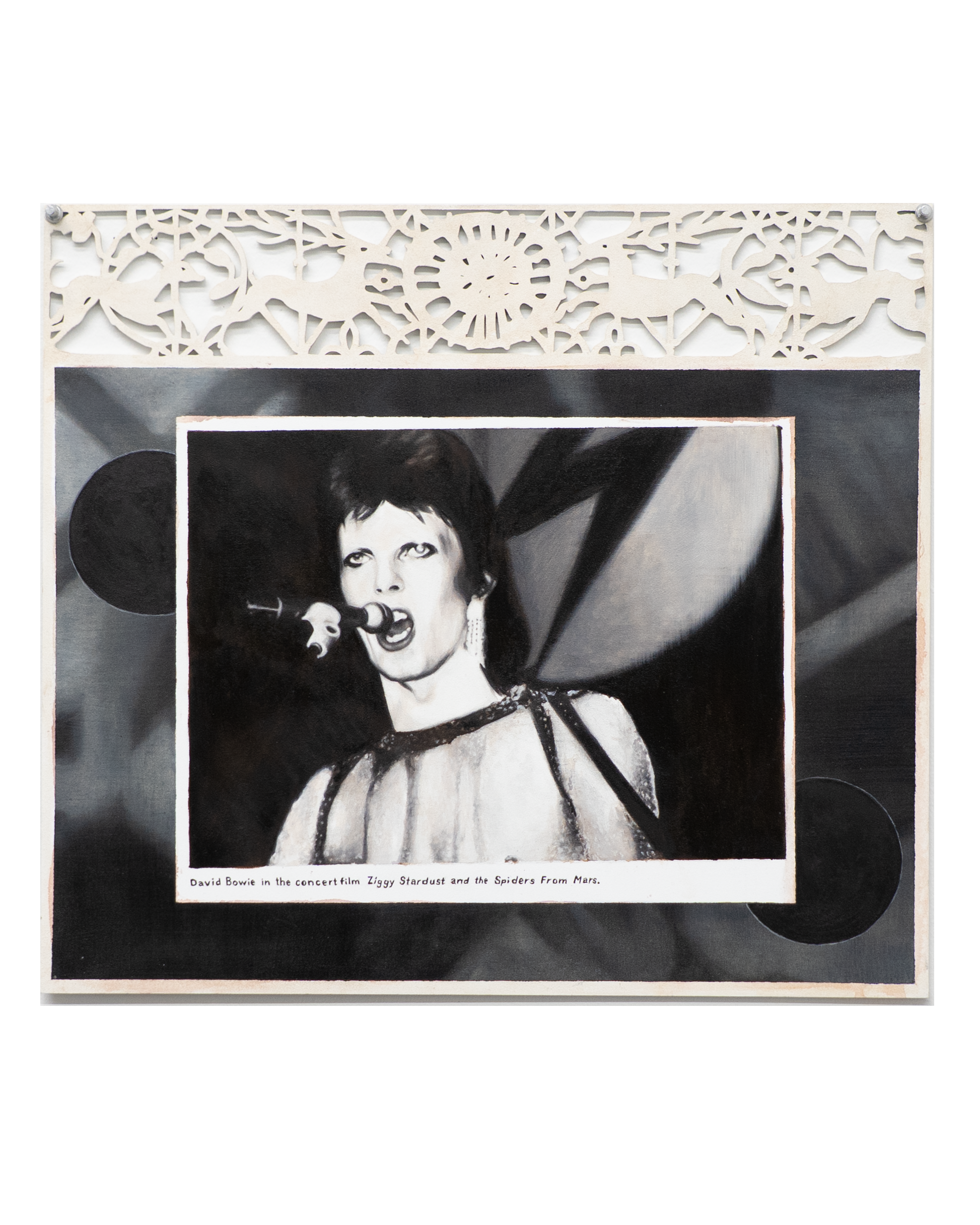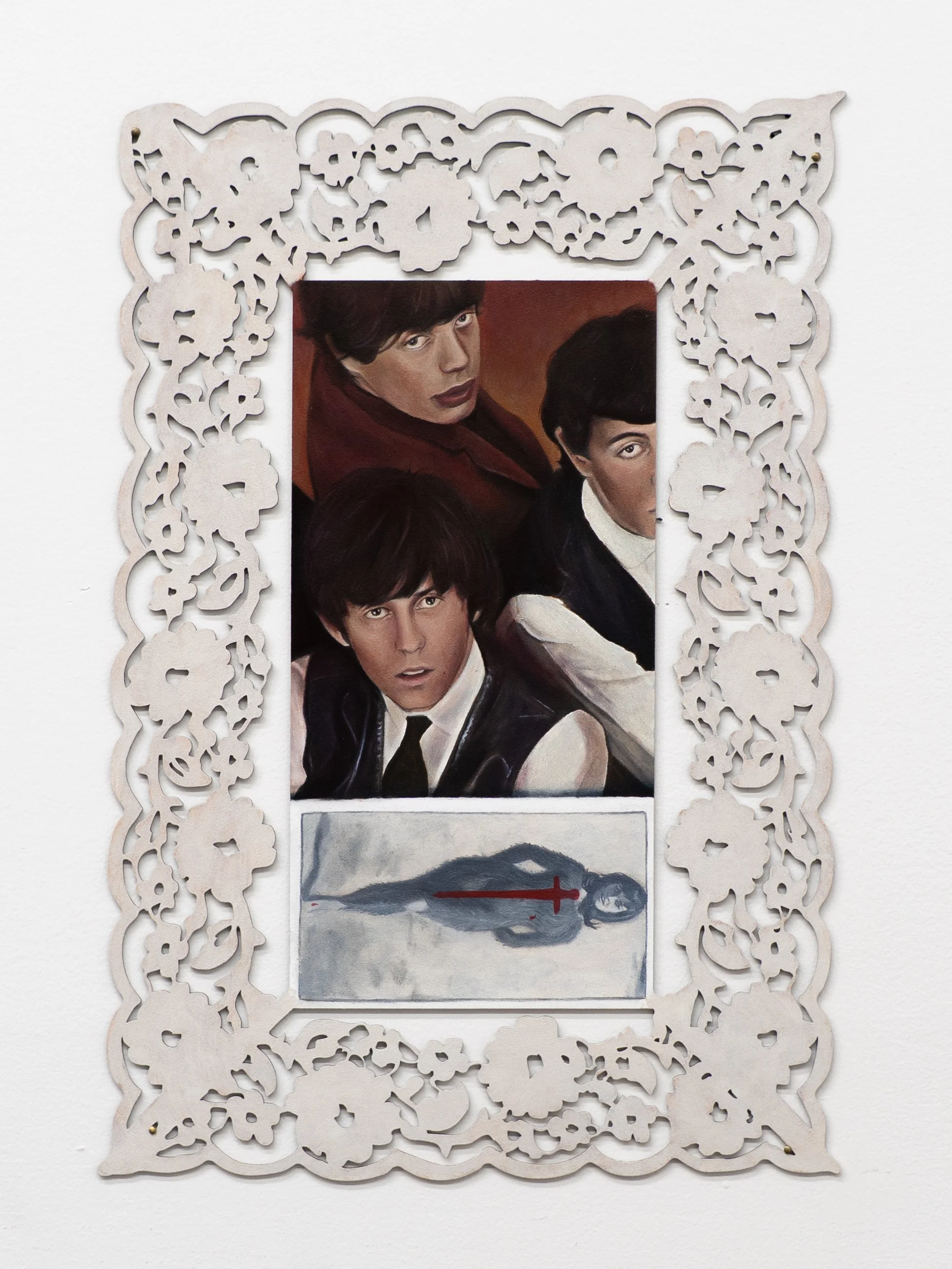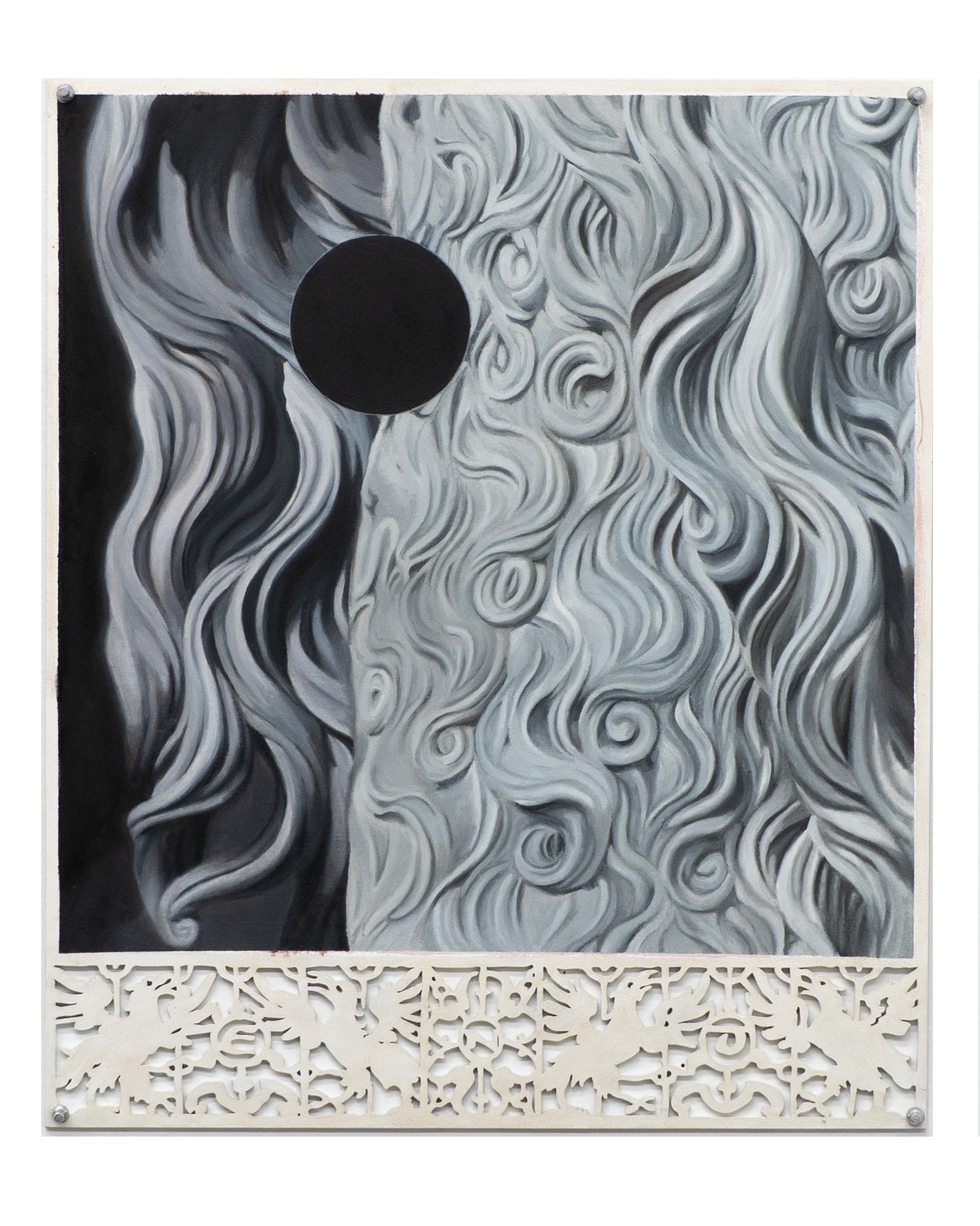 oil on paper mounted to hand-cut paper frame